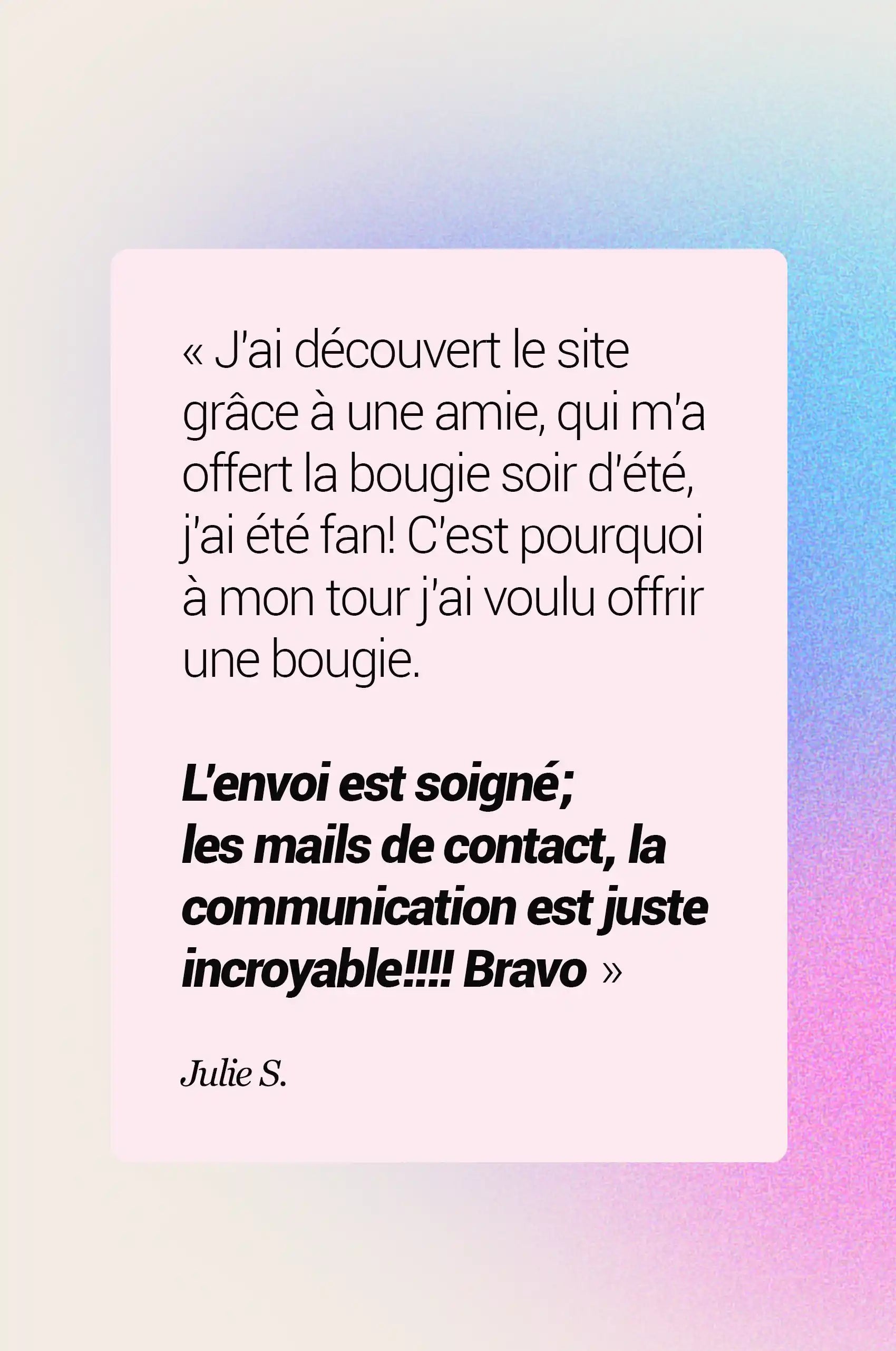 Si par malheur, tu tombes sur un livreur rageux qui s'est défoulé sur ton colis, contacte-moi et je te renvoie une nouvelle bougie illico.