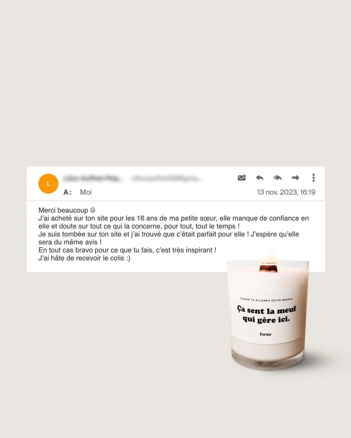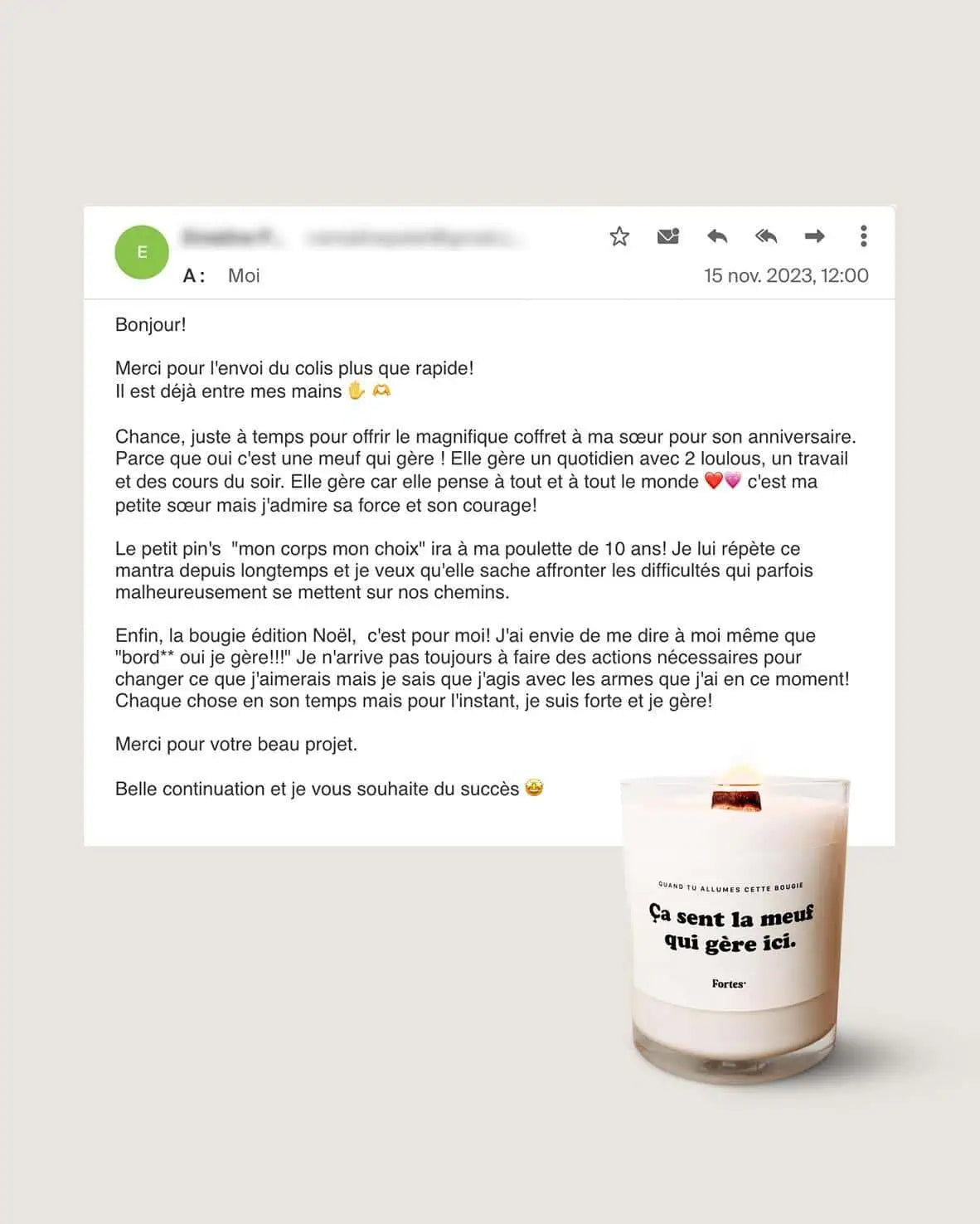 Tous ces messages sont inestimables pour moi, c’est mon énergie, ma motivation, (ma drogue 🙃) la raison pour laquelle j’ai envie de continuer à créer des produits pour t’aider à te sentir forte, chaque jour.